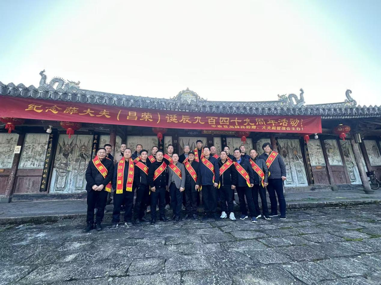 2025年12月16日,浙江平阳腾蛟镇忠训庙内香火鼎盛、钟磬齐鸣。值此民族英雄薛大夫(昌宋)诞辰949周年之际,来自全国各地的薛氏后裔与当地百姓逾千人齐聚这座始建于南宋的千年古庙,以最庄重的传统道场佛事追思先贤,共续忠勇家风。